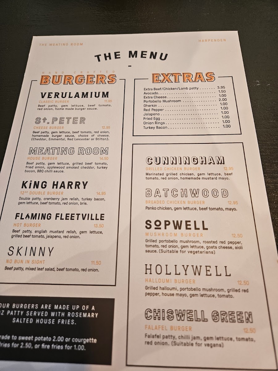 The Meating Room, located at 5 Station Rd, Harpenden AL5 4SA, offers a mouth-watering variety of burgers that cater to different tastes and preferences. Their menu is simple yet packed with flavor, making it an ideal spot for burger lovers.